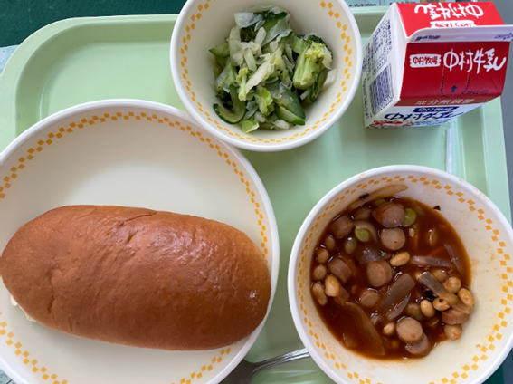 今週 はかみかみ週間 となっています。毎日 の献立 の中 に、かみかみメニューを入 れています。今日 のかみかみメニューは、チリコンカンです。チリコンカンの中 には大豆 をはじめとする豆類 がたくさん入 っています。豆類 は歯 ごたえがあるので、自然 とかむ回数 も増 えます。大豆 が苦手 な人 が多 いかもしれませんが、大豆 には、みなさんの血 や肉 を作 る栄養素 がたくさん含 まれています。自分 の体 をつくる元 になっていると思 って、がんばって食 べましょう。