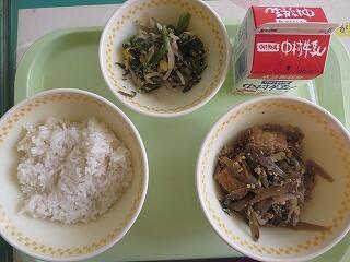 今日から二学期が始まりました。まだまだ暑い日が続きます。生活リズムを整え、給食をしっかり食べて二学期も頑張りましょう。さて、今日はひじきについてお話します。ひじきは、昆布やわかめと同じ海藻の仲間です。ひじきは乾燥させてあるので、水に戻してから料理に使います。生のひじきはおうど色をしていますが、乾燥させると黒くなります。ひじきには、成長期のみなさんに必要な、骨や歯をつくるカルシウムがたくさん含まれています。しっかり食べてくださいね。