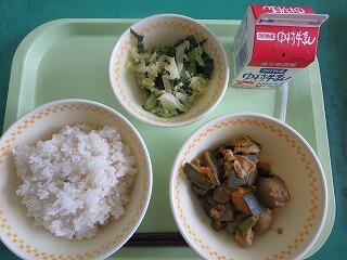 今日はちくわについてのお話です。ちくわは、魚のすり身に塩や砂糖、でんぷんなどを入れてねりつぶし、棒のような形を作り、蒸したり焼いたりして作られています。切り口が竹の輪に似ているので、竹輪という名前が付きました。冷蔵庫がなかった時代の人々が、海の幸を食べやすく日持ちのいいようにと工夫した食べ物です。ちくわの主な材料は魚なので、血や肉のもとになるたんぱく質がたくさん含まれています。今日は和風和えに入っているので、探してみてくださいね。
