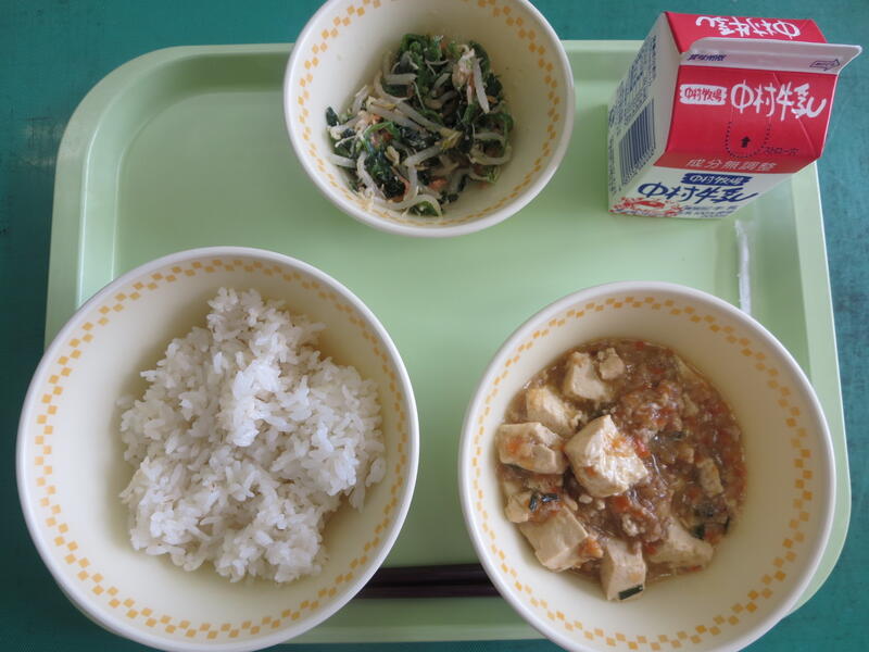 今日の主菜は、麻婆豆腐です。豆腐の原料である大豆は、「畑の肉」と呼ばれ、お肉に負けないくらい良質なたんぱく質が含まれています。さらに今日の麻婆豆腐にはしいたけも入っていますね。カルシウムに吸収を助けて骨を丈夫にしてくれるビタミンDが豊富です。ピリ辛の味付けは食欲を高め、体を芯から温めてくれますよ。