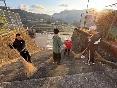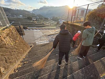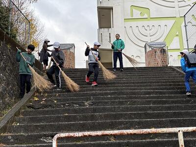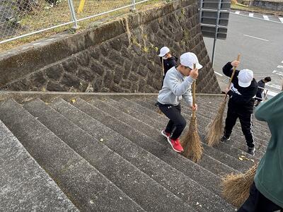 寒さが増している12月。そんな中、朝のボランティア活動に取り組んでいる5・6年生の姿があります。正門から下にある道路に続く階段をきれいにしてくれています。様々な委員会活動も担っている5・6年生ですが、朝の放送が始まるまでの時間等を有効活用しながら取り組んでいます。自分たちが通う学校のことを思うからこそ、この行動が生まれます。この思いが他の学年に広がり、伝統として継承されることを願っています。