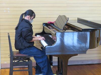 3・4年生が合同で音楽の学習を行っています。この日の学習は、鍵盤ハーモニカの練習でした。この季節にぴったりの「あわてんぼうのサンタクロース」の曲の練習に挑戦しました。はじめに、階名で歌を歌うことで楽譜を覚えました。そして、一段ずつ鍵盤ハーモニカの練習をしていきました。最後に、曲全体を通して演奏しました。まだまだ完全ではないですが、演奏できる部分が増えるに従って楽しさが増しているようでした。
