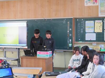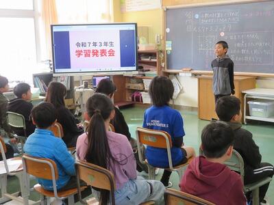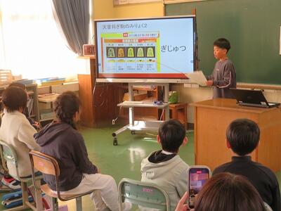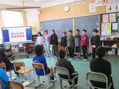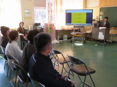 2月15日(日)に今年度最後の参観日を行いました。参観授業の内容は、各学年による学習発表会です。1年間学習してきた内容や得意なことを発表するなど様々でした。低学年は、実際にマット運動をしたり跳び箱を跳んだりもしていました。中学年や高学年は、プレゼンを作成し、学習した内容を説明したりクイズを出したりしていました。保護者の方に参加していただく場面もありました。各学年とも40分間という時間の中での発表でしたが、1年間で成長した子どもたちの様子をご覧いただけたことと思います。また、学級懇談会にもたくさんの方々にご参加いただきましてありがとうございました。子どもたちが学校生活を送る日も残すところ25日程度となりました。これからも子どもたちの更なる成長を目指して尽力してまいります。今後とも本校教育へのご理解とご協力をお願いいたします。