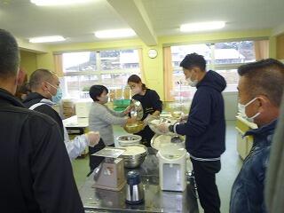 日之影町青少年健全育成町民会議の皆様による豚汁の振る舞いもありました。各校の教頭先生方も役員として参加しました。