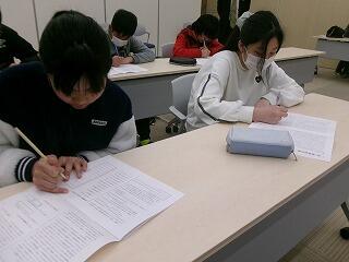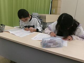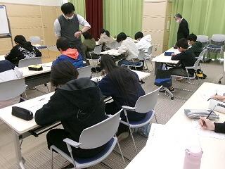 先週に引き続き本日も塾の講師をお招きして勉強させていただきました。小学校の教室とは違う雰囲気の中で、もうすぐ中学校で一緒になる他の学校の人たちと勉強する時間はとても貴重な時間です。