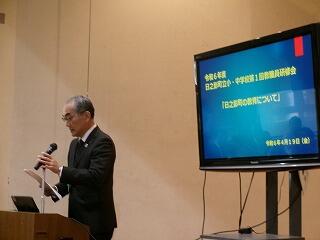 本年度も町教職員が一堂に会して研修を行います。第1回目は、教育長講話「学力向上の取組」指導主事説明「日之影町における小・中9年間を見通したキャリア教育の充実」がありました。
