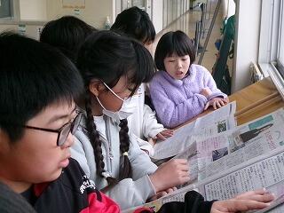 児童の保護者様製作による「新聞台」ができ上がりました。早速子どもたちが新聞を読んでいます。すばらしい学習環境の提供をありがとうございます。