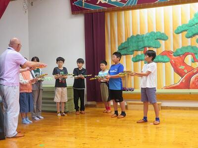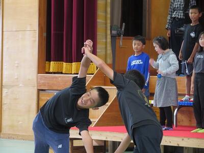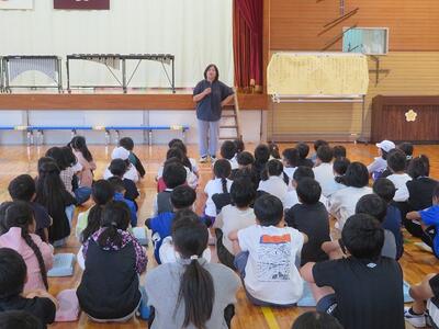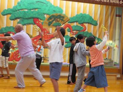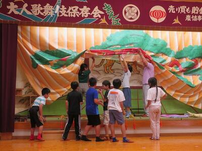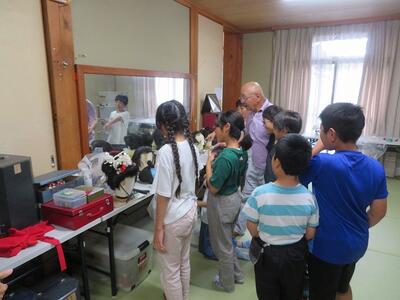10月10日(金)に4年生が本校校区内の大人(おおひと)地区にある歌舞伎の館を見学しました。まず、大人歌舞伎保存会の方が大人歌舞伎の歴史について説明をしてくださいました。その中で、「大人で舞われている歌舞伎は、九州で唯一のものであること」「日之影町指定無形民俗文化財であり、宮崎県指定無形民俗文化財であること」などについて学びました。その後、歌舞伎の舞い方や衣装や道具の見学を行いました。今回の見学や体験の中で、大人歌舞伎という文化の重要性や大人歌舞伎を継承することの大切さを学んだ子どもたちです。10月12日(日)に秋の例大祭で舞われるのを前に貴重な体験をした4年生の子どもたちです。