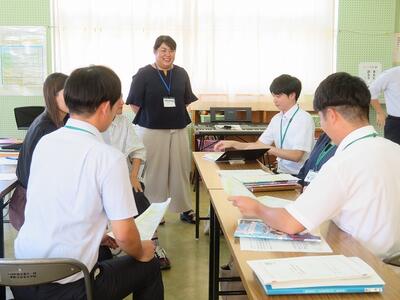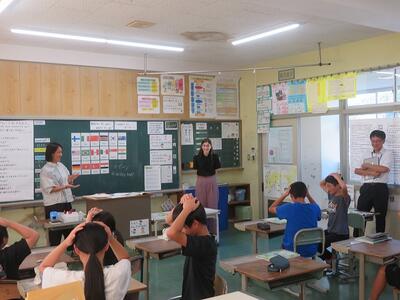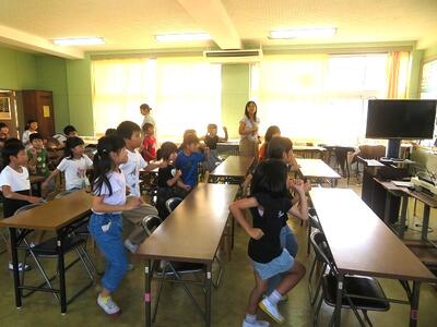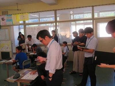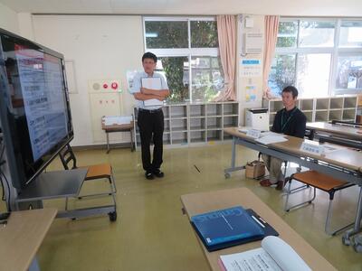 10月10日(金)に、外国語指導力向上研修が本校で行われました。この研修の目的は、「町内小中学校の教員が、言語活動の在り方をはじめとする外国語科指導における基本事項について授業参観等を通じて学ぶことで、自分自身の課題に気づき、外国語の係る指導力の向上を図る。」ことです。今回は、本校の齋藤教諭とALTが6年生を対象に授業を行いました。「自分が行きたい国の魅力を伝える」という学習内容でした。プレゼンでそれぞれの国の魅力を知ったり、ゲーム的な要素を含む内容で国の名前を習得したり等様々な活動が組み込まれ、子どもたちも楽しそうに学習に取り組みました。授業後は、教員同士で協議を行ったり、北部教育事務所の指導主事による研修が行われたりしました。今回の研修で指導力が高まり、積極的に外国を活用する児童の育成につながれば幸いです。