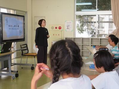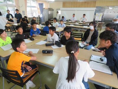 10月16日(木)に第3回学校運営協議会を開催しました。今回は、給食試食会、午前中5時間40分授業についての説明、4~6年生を対象とした「よのなか教室」の内容でした。その中で、よのなか教室では、日之影町地域おこし協力隊であり、株式会社たくぼに所属されていらっしゃる方を講師としてお招きし、お話をししていただきました。「なぜ日之影町に住むことになったのか」「日之影町の魅力」等についてお話していただく姿に、子どもたちは懸命に聞き入っていました。その後、各学年に分かれて感想や考えたことを述べ合いました。各学年には、学校運営協議会委員様にも入っていただき、子どもたちの感想に対しての思いを語っていただきました。よのなか教室で子どもたちが感じたことや考えたことが、これからの子どもたちのキャリヤ形成につながっていくことでしょう。今回、学校運営協議会に参加してくださった委員の皆様をはじめ、日之影町教育委員会の皆様に感謝申し上げます。