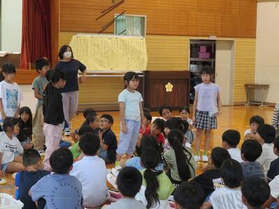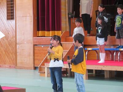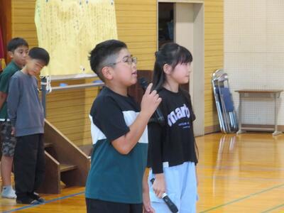 10月24日(金)に計画されている日之影町音楽祭に向けて全体練習を行いました。15分間の発表時間を想定しての全体練習です。まずはじめに、1・2年生がステージ前に並び、歌を披露しました。次に、3・4・5・6年生と入れ替わり、3~6年生が合唱と合奏を披露しました。その後、互いの発表を見たり聞いたりした感想を伝え合いました。この全体練習はあと1回です。それまでに、今回見えてきた課題を修正し、本番に臨みます。今週も練習が続きます。