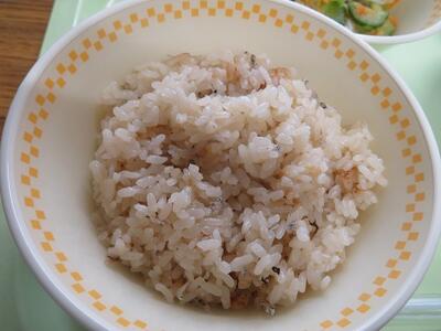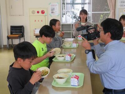 また、この日の給食には「日之影町産釜炒り茶」で炊いたご飯が出されました。お茶の学習を行った後でしたので、香りや味を確かめながらおいしそうに食べていた子どもたちです。