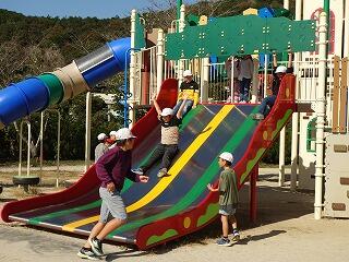 1~4年生が秋の遠足に行きました。バスの中も盛り上りました。ビーチの森すみえの水族館を見学した後、すみえの森公園でご飯を食べたり遊んだりしました。その後、須美江海水浴場でも遊びました。