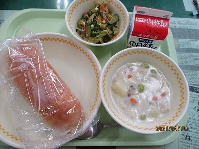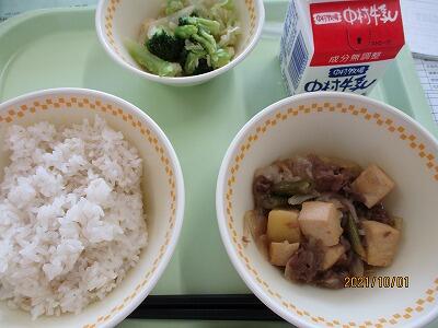 今日は、お月見献立です。昨日は、中秋の名月でした。給食では、1日遅れましたが、白玉だんごを月に見立てた月見汁にしました。