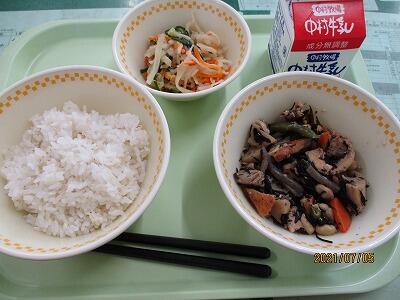 今日の高千穂牛(ビビンバ)と干し椎茸(わかめスープ)は西臼杵産の食材です。給食では、地域で大切に育てられた食材を積極的に使用させていただいています。感謝の気持ちを忘れずに、おいしくいただきましょう。