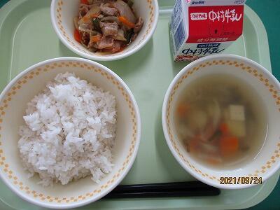 今日は、春野菜のみそ汁に、春キャベツ、たまねぎを使用しています。