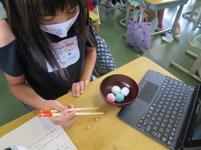4時間目のあとの給食の時間にも、正しいおはしのもち方で食べようと頑張っている姿を見ることができました。