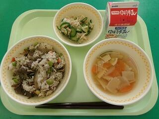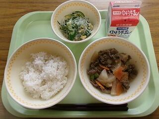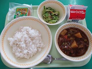 給食を取りに来た給食当番の子どもたちが、「やった~!今日は高千穂牛だ!!」と大喜びしていました。おいしい高千穂牛肉をハヤシライスでいただきました。いつもありがとうございます