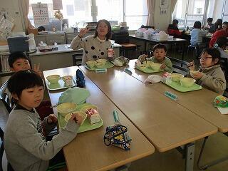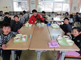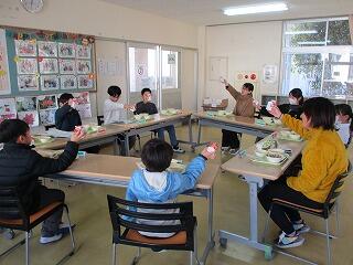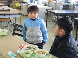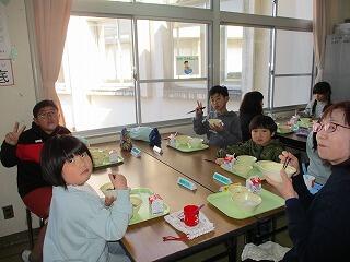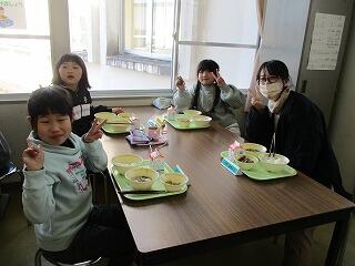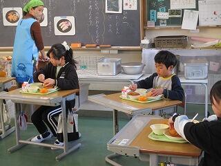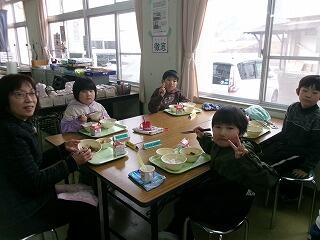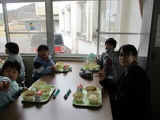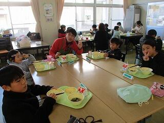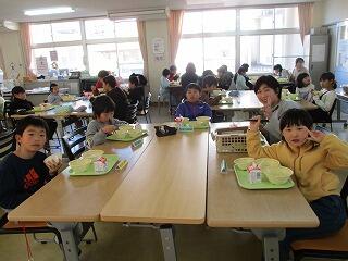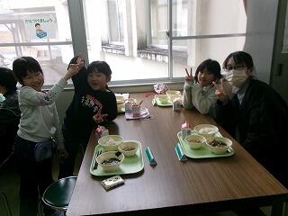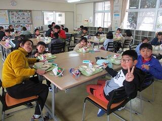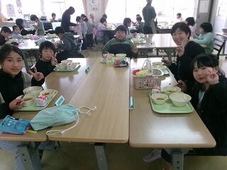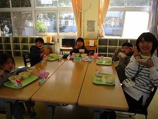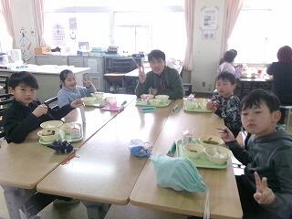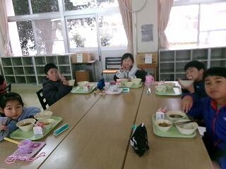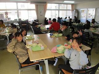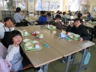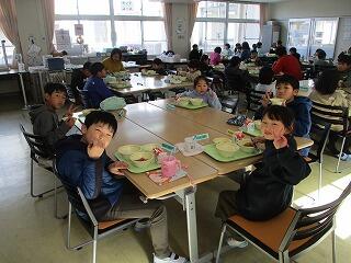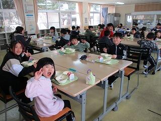 1、3、4年生は、楽しそうに給食時間を過ごしています。