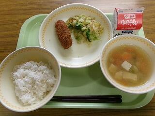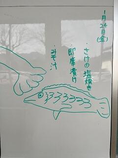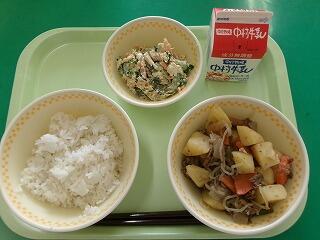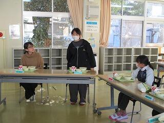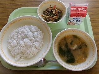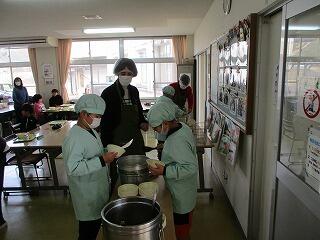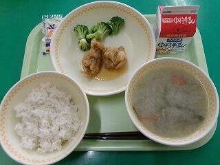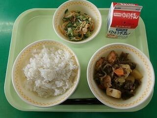 今日は大根をすりおろして入れたみぞれ汁です。今日のような寒い日には汁物を飲むと体の中から温まりますね。大根おろしに使った量は5kgです。たくさんの大根をすりおろしてくださった給食室の先生方に感謝です。ごちそうさまでした。