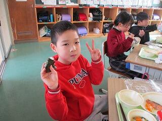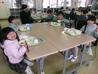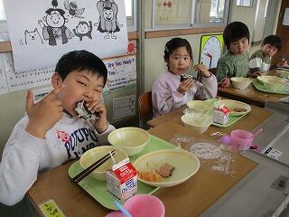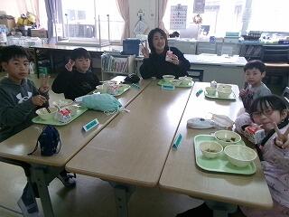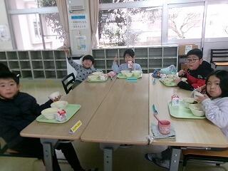 牛乳かんぱいをして、給食をおいしくいただきました。