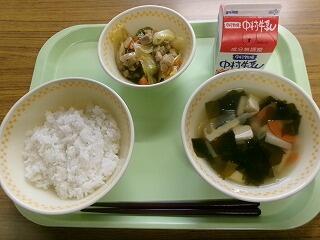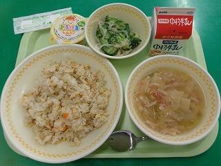 今日はチャーハンに野菜のあんかけをかけて食べる献立です。体が温まります。あんかけに入っている白菜は、寒くなると葉が凍らないように、光合成で作ったでんぷんを糖に変えて葉に集めるので甘みが増すそうです。
