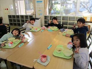 昨日、2月2日は節分でした。子どもたちが、「豆まきしたよ~」や「恵方巻きを食べた~!」とお家での節分の様子を教えてくれました。節分とはもともと季節を分ける日のことで、立春、立夏、立秋、立冬の前日のことです。旧暦では、立春と正月が近いこともあり、立春の前日が節分行事の代表になったと言われています。節分の日に豆をまくのは、災いを鬼に見立てて豆で追い払うということからきているそうです。また、節分にいわしを食べる風習もあります。いわしを食べることで一年を健康を過ごせるようにという願いが込められているので、今日はいわしの献立にしました。今年一年が健康に過ごせますように。