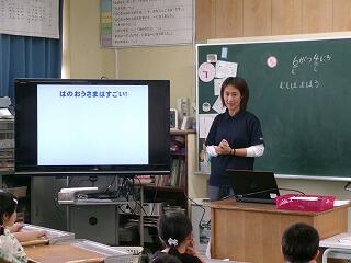 今週は、宮水小学校の性に関する指導週間です。養護教諭が各学年1時間ずつ授業に入ります。今日は1年生と一緒に学習です!