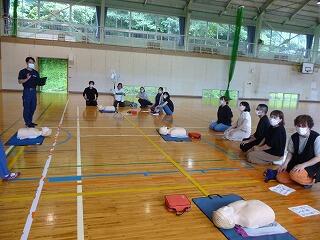 第1回目は、西臼杵広域消防本部の方々をお招きし、心肺蘇生法、AEDの講習会を行いました。