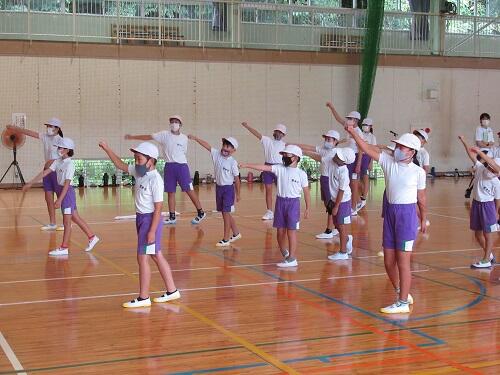 今日は運動会予行練習の予定でしたが、前日の雨により運動場の状態がよくないため明日に延期をしました。なかなか晴れの天気が少ないのですが、体育館では1~4年生がダンスの仕上げを頑張っていました。