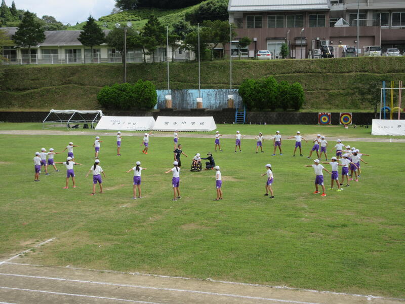 朝の時間から1時間目にかけて、第2回目の運動会全体練習を行いました。先週までは雨のため体育館での練習でしたが、今日は天気も良く、また昨日のPTA奉仕作業で運動場周辺の整備をしていただきましたので、子どもたちも気持ちよく練習ができました。