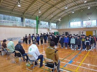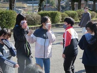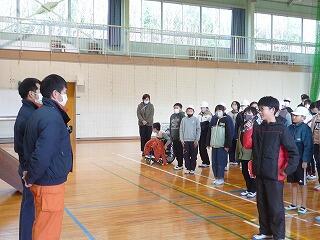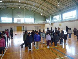 寒い中、全校児童で晴れた日は運動場で、雨の日は体育館で持久走をよく頑張りました。