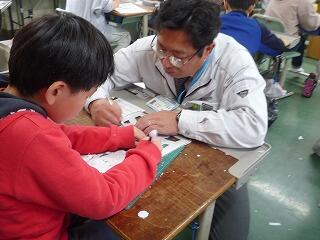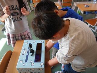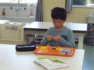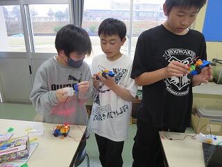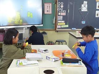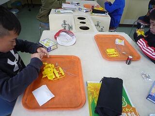 3年生が理科の学習で使う道具を熱心に組み立てていました。