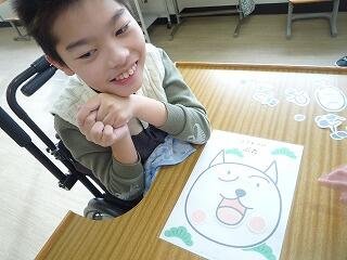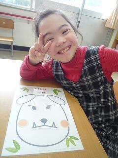 たんぽぽ学級の2人が「福笑い」をしました。いい味出てますね!