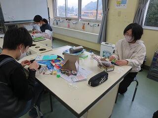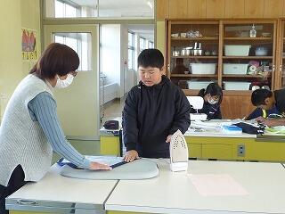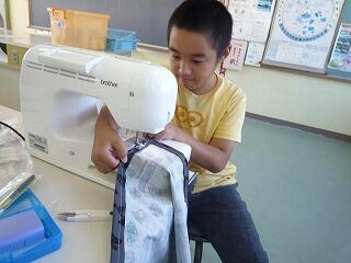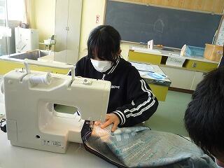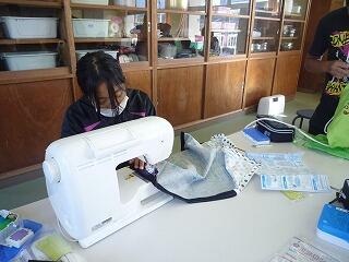 6年生が家庭科でミシンを使って作品を作っていました。
