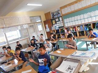10月に教育実習をされた先生が学校に遊びに来てくださいました。体調不良の欠席がいて少ない人数で勉強している中の突然の訪問に子どもたちは大喜びでした。また是非遊びに来てください。ありがとうございました。