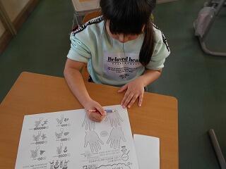 1年生が保健室の先生から手洗いの仕方を習いました。自分ではきちんと洗ったつもりでもまだ不十分であることに気付き驚いていました。勉強したことをもとに健康な生活を心掛けてほしいです。