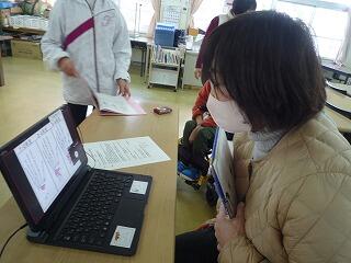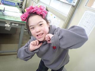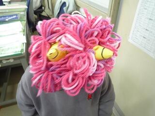 今日は節分です。たんぽぽ学級の児童が鬼を作って職員室に来た様子を紹介します。