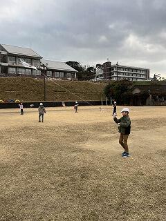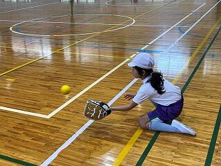 寄贈していただいたグローブを使って、1、2年生がキャッチボールに挑戦しました。
