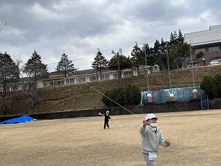 2年生が手作りの凧をあげました。風が強くて苦労しましたが、勉強になりました。