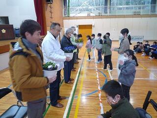 いつも御世話になっている地域の方々をお招きしてありがとう集会を開きました。お一人お一人御挨拶いただきました。6年生代表が御礼の言葉を述べた後、全校の子どもたちから花と歌をプレゼントしました。