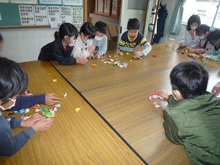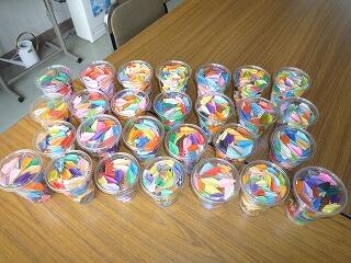 いつも御世話になっている地域の方から、「自宅で折ったから」とたくさんの折り鶴をいただきました。1年生が代表して色ごとに分けました。これから計画を立てて作品にしていきます。出来上がったら紹介します。いつも本当にありがとうございます。