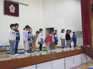 本日で2学期が終わりました。代表の人の作文、大変素晴らしかったです。1年生が成長したことを感じます。5年生は生産活動の様子をプレゼンテーションを使って発表しました。担当の先生からの話もしっかり聞けました。命を大切にする冬休みにしてほしいです。新しい年に新しい気持ちで登校してきてください。