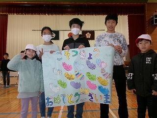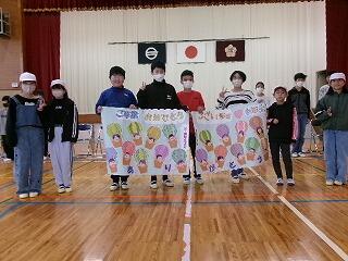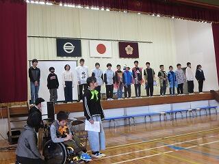 各学校から児童生徒、保護者、教職員が参加しました。本校児童2名も参加しました。みんなでゲームをした後、在校生が楽しかったことや頑張ったこと、これからの目標を発表しました。卒業生には、他の学校からプレゼントを渡しました。参加していただいた皆様、準備いただいた先生方、ありがとうございました。