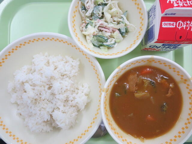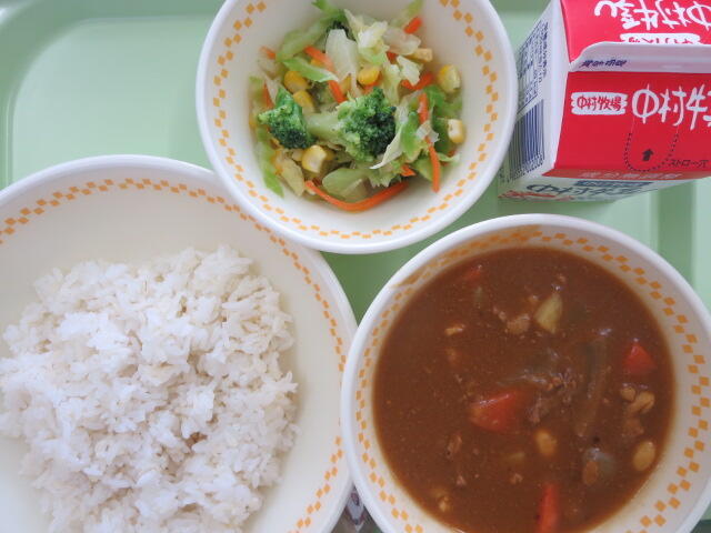 【カレーライス グリーンサラダ 牛乳】