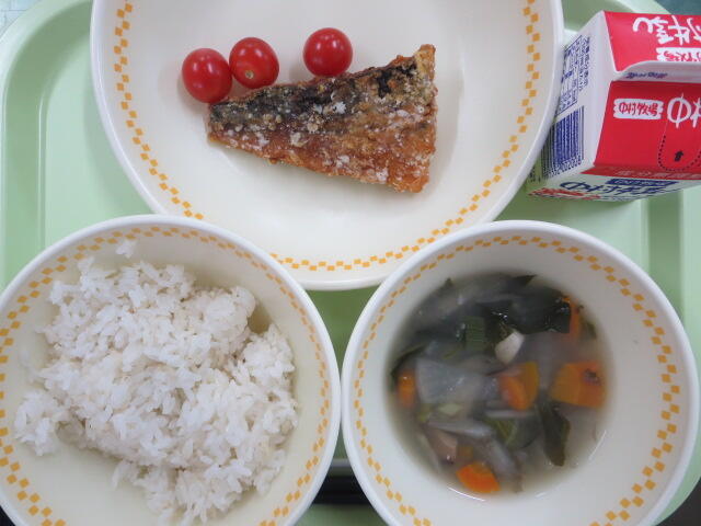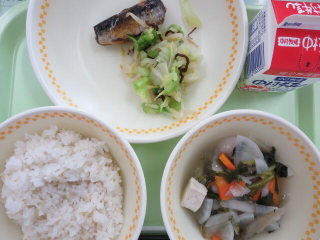 1月24日の今日は学校給食記念日です。明治時代に山形県で始まった学校給食は、戦争の食料不足の中、給食を続けることができなくなり、一度中断されました。戦争が終わり、おなかをすかせていた子どもたちを助けようとアメリカから脱脂粉乳などがプレゼントされ、また給食を始められることになりました。今日はその給食記念日にちなんで、給食の始まりと言われるごはんと魚にしてみました。今の日本は「飽食」と言って、食べ物にあふれ、なに不自由なく食べることができますが、世界には食料不足で飢えに苦しんでいる人もいます。感謝の気持ちを忘れず、食べ物を無駄にしないようにしましょう。