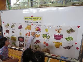 今日は、夏の食べもの「とうがん」という野菜を使いました。とうがんは、漢字で書くと「冬」の「うり」と書きます。漢字に冬という字が入っているのに、夏の食べものなのかと思う人もいるかもしれませんが、この名前の秘密は、とうがんが長い期間保存がきくということから「冬までもつうり」ということで、冬瓜と名づけられたそうです。冬瓜は、きゅうりやスイカなどと同じ瓜の仲間です。ほとんどが水分でできているので、食べると体の中の余計な熱を下げてくれます。暑い夏にはぴったりの食べものですね。