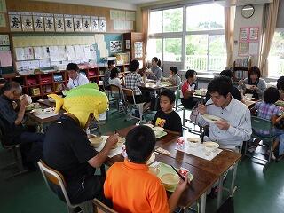 今日は日之影町教育の日でした。1・2年生はランチルーム、3~6年生は各教室で食べました。たくさんの友達と食べる給食はいつもよりおいしかったことでしょう