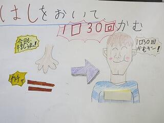 6月4日から10日までは歯と口の健康週間です。少しずれますが、今日から保健給食委員会がカミカミデーの放送をしたり、歯みがき指導で各クラスをまわったりしています。「80歳までに20本の歯を残そう」という取り組みがありますが、歯は食事を楽しむために欠かせないものですね。お家でもよく噛むことや食後の歯みがきをこころがけましょう!