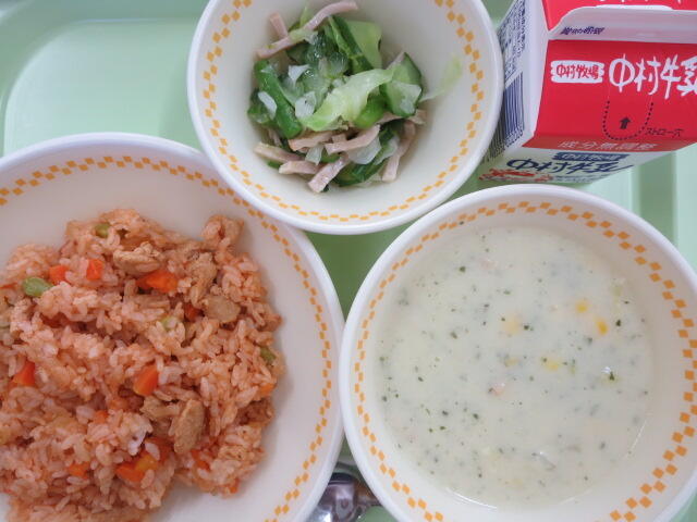 【きのコーンごはん 飛鳥汁 千切り大根のオーロラソース 牛乳】